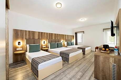 Providing free toiletries, this quadruple room includes a private bathroom with a shower, a hairdryer and slippers. The spacious quadruple room provides air conditioning, soundproof walls, a mini-bar, a wardrobe, as well as a TV with satellite channels. The unit offers 3 beds.