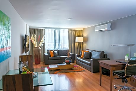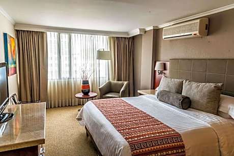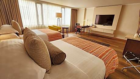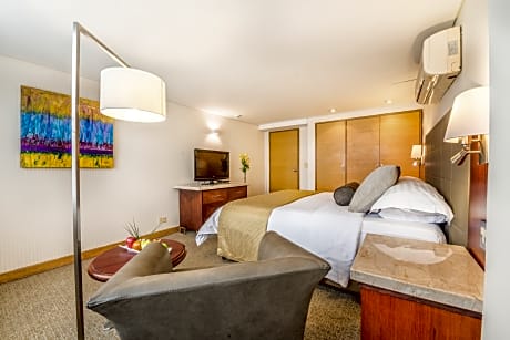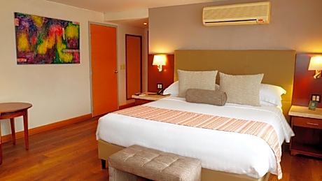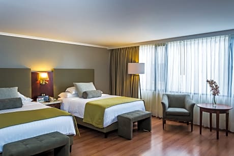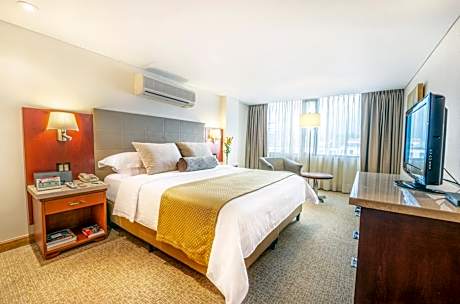 From the moment you enter our cozy Lobby, you are warmly received in a hotel that reflects modern warmth and an exquisite design between classic and contemporary styles; When you arrive at your accommodations you enjoy a combination of warm and comfortable spaces that have an elegant and minimalist decoration; the rooms are spacious and some of them show us beautiful views of the city and its surroundings where nature rewards us with beautiful mountains, all of which combine perfectly. At the Bogotá Plaza Hotel we offer an excellent service to ensure the best travel experience for those who visit us. Our staff is prepared and trained to serve business travelers, groups, couples and families. The location is ideal: one of the best areas in the north of Bogotá, on Calle 100, one of the main avenues of the city, with very close grocery options, such as the ""Carulla Fresh Market"" supermarket, pharmacies such as Cruz Green and Farmatodo; Likewise, we are close to financial centers, gastronomic areas and tourist attractions; El Dorado International Airport is a 45-minute drive away. Those who have lived the Bogotá Plaza Hotel experience recognize and recommend us as an ideal personalized, social and business center.