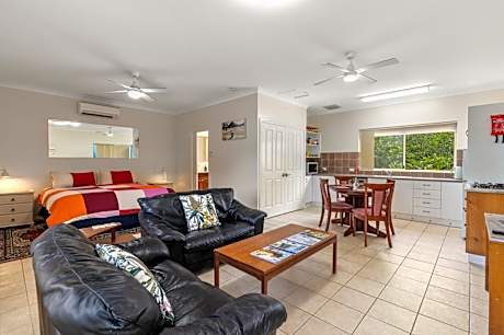 Bon Villas B&B Bonville - Adults Only, Pet Friendly Accommodation in Coffs Harbour provides adults-only accommodations with a garden and barbecue facilities. This property offers a private pool, free Wifi, and free private parking. Guests can make use of the outdoor fireplace or the picnic area, or enjoy views of the garden and quiet street. At the bed and breakfast, every unit comes with air conditioning, a seating area, a flat-screen TV with streaming services, a kitchenette, a dining area, and a private bathroom with a hair dryer, a walk-in shower, and free toiletries. A dishwasher, a microwave, and toaster are also available, as well as a kettle. At the bed and breakfast, every unit includes bed linen and towels. The Big Banana is 11 miles from the bed and breakfast, while Coffs Harbour Golf Club is 8.4 miles from the property. Coffs Harbour Airport is 7.5 miles away.