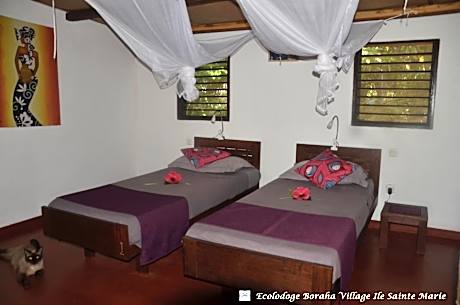 Boraha Village Ecolodge features a garden, shared lounge, a terrace and restaurant in Sainte Marie. This 2-star hotel features free WiFi and a bar. There is free private parking and the property provides paid airport shuttle service. At the hotel, each room comes with a desk. Featuring a private bathroom with a shower and free toiletries, rooms at Boraha Village Ecolodge also offer a sea view. Guest rooms include a safety deposit box. A buffet breakfast is available at the accommodation. Guests at Boraha Village Ecolodge will be able to enjoy activities in and around Sainte Marie, like hiking and canoeing. Sainte Marie Airport is 7.5 miles away.
