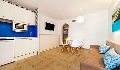 Globales Bouganvilla is set in the east of Mallorca. It is nearby Sa Coma, a white-sand beach with clear waters. This apart hotel has 253 studios, 295 one-bedroom apartments and 66 2-bedroom apartments. This aparthotel offers a free Wi-Fi zone, tennis courts and 5 outdoor swimming pools, including one of Mallorca’s largest pools. Each bright apartment and studio has a private balcony. Studios also include air conditioning. There is free satellite TV and a safe is available for a surcharge. A mini train connects the complex to the beach and central Sa Coma. Bouganvilla has a buffet restaurant, a pasta and pizza restaurant and a snack bar. There is also a poolside bar where you can enjoy live shows every evening. Bouganvilla in Sa Coma has its own mini-market and self-service laundry room. The 24-hour front desk offers currency exchange and car rental. Free public parking can be found nearby.