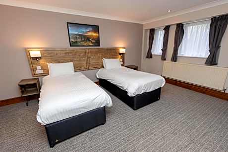 Around 2 miles from Alfreton, Boundary, Alfreton by Marston's Inns offers en suite accommodations in Derbyshire. Attractive rooms are complemented by a bar, restaurant and children’s playground, with free parking and Wi-Fi. Each room at Boundary has private bathrooms with bath and shower. There is a flat-screen TV, bottled water and tea and coffee facilities in all rooms. A full English breakfast is served each morning. The enticing restaurant menu features curries, pies, fish and chips, burgers and a delicious range of puddings. Just 5 minutes from the M1, on the A38, this Marston's Inn is around 15 miles from both Derby and Nottingham. Derbyshire’s Peak District is a similar distance to the west of Alfreton.