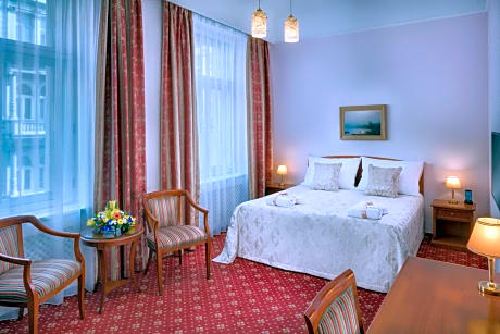 In a 19th-century building in the heritage-protected area, Boutique Hotel Seven Days is 215 yards from Prague National Museum. The restaurant features an atrium and the bar has international TV channels. The Art Nouveau-style building dates back to 1888 and offers luxurious, air-conditioned rooms with free wired internet access. The rooms are non-smoking and soundproof. The bathrooms come with hairdryers and showers or bathtubs. The cozy bar serves a wide range of beverages and snacks. It comes with a 61' plasma screen TV showing live football games on Sky Sports satellite channels, international news channels and music entertainment. The whirlpool, the sauna and massage services are available upon prior reservation for an additional fee. The Narodni Muzeum metro station is 215 yards away and Wenceslas Square, Prague's main shopping boulevard, is a 5-minute walk from the Boutique Hotel. The Old Town Square is reachable within a 15-minute walk.