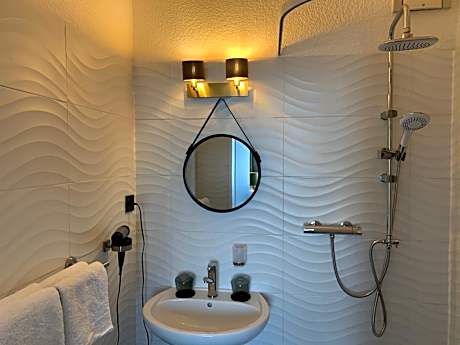 Located in Düsseldorf, 2.9 miles from Fair Dusseldorf, Boutique Hotel Villa Sarah has accommodations with free bikes, private parking, a garden and a bar. The property is around 3.2 miles from Merkur Spiel-Arena, 3.2 miles from CCD Congress Center Dusseldorf and 4.9 miles from Kunsthalle Düsseldorf. Free WiFi and room service are offered. The rooms come with a flat-screen TV with satellite channels, fridge, a coffee machine, a shower, free toiletries and a desk. Rooms are complete with a private bathroom equipped with a hairdryer, while certain accommodations at the hotel also feature a terrace. Guest rooms will provide guests with a closet and an electric tea pot. Kom(m)ödchen is 4.9 miles from Boutique Hotel Villa Sarah, while Church of St. Andreas is 5 miles from the property. Düsseldorf Airport is 0.6 miles away.