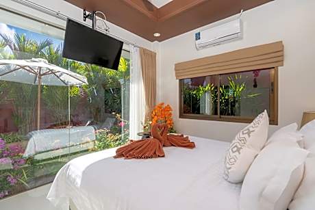 At Boutique Resort Private Pool Villa (Pet friendly), exceptional service and top-notch amenities create a memorable experience for guests. Complimentary internet access is available in the resort villa to ensure you stay connected during your visit. Arrange your trips to and from the airport using the resort villa's convenient transportation services booking.Discover the wonders of Phuket with ease by utilizing the services provided by taxi, car hire and shuttle.Complimentary parking is available for guests.Continuously receive the support you require through front desk amenities such as concierge service, express check-in or check-out, luggage storage and safety deposit boxes.At the resort villa, their ticket service and tours is also capable of assisting with booking tickets and securing reservations for entertainment and adventures. Always look your best in your preferred attire with the laundromat, dry cleaning service and laundry service provided at Boutique Resort Private Pool Villa (Pet friendly). Craving relaxation? In-room amenities such as room service and daily housekeeping allow you to maximize your time spent inside the room.Additionally, you can obtain minor travel essentials and miscellaneous items at the convenience stores without departing from the Boutique Resort Private Pool Villa (Pet friendly). Due to health concerns, smoking is strictly prohibited within the entire premises of resort villa. For the health and well-being of all guests and staff, smoking is restricted exclusively to assigned zones.Accommodations come equipped with all the conveniences required for a restful night's slumber.A selection of rooms feature linen service, blackout curtains and air conditioning to ensure your comfort and convenience.A few accommodations in Boutique Resort Private Pool Villa (Pet friendly) incorporate separate living room and balcony or terrace into their architectural arrangement. A few chosen rooms are equipped with television, in-room video streaming and cable TV to ensure guest amusement.In certain rooms, the resort villa offers visitors access to a refrigerator, bottled water, a coffee or tea maker, instant coffee, instant tea and mini bar.Boutique Resort Private Pool Villa (Pet friendly) offers a hair dryer, toiletries and bathrobes in the restrooms of specific accommodations. A delightful breakfast is the perfect way to begin your day, and at Boutique Resort Private Pool Villa (Pet friendly), you can always indulge in a scrumptious meal on-site. All adore a delightful cup of coffee! An on-site coffee shop ensures you can relish a cup of authentic, freshly-brewed coffee every morning -- or whenever you desire it.Allow your journey to be free from the pangs of hunger! On-site eateries offer delicious and accessible meal choices.At Boutique Resort Private Pool Villa (Pet friendly), guests with diverse dietary needs are accommodated by offering options like halal among the different types of cuisine. An evening spent at resort villa's bar can offer as much enjoyment as venturing out with your fellow travelers.At Boutique Resort Private Pool Villa (Pet friendly), experience the ease of having groceries brought straight to your accommodation through their efficient service.Are you inclined to prepare your own dishes? You will surely appreciate having the on-site BBQ facilities available. At Boutique Resort Private Pool Villa (Pet friendly), guests can take pleasure in the delightful recreational amenities provided for their entertainment. Conclude your days in complete tranquility by paying a visit to massage, hot tub, spa and sauna for ultimate relaxation. At Boutique Resort Private Pool Villa (Pet friendly), a wide array of amenities guarantees a fulfilling experience throughout your visit. Make your holiday truly memorable by taking a rejuvenating plunge into the pool. At the resort villa fitness center, you have the option to engage in your daily exercise routine or simply alleviate your jet lag by breakin... License Number(s): 133/2563