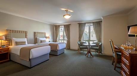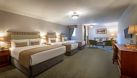 The 4-star Bracken Court Hotel is in the picturesque village of Balbriggan, a 30 minute drive from Dublin’s center. It offers free parking, free Wi-Fi, and free newspapers, as well as spacious rooms with marble bathrooms and showers. The modern rooms at the Bracken Court are decorated in warm colors with comfortable Respa beds and crisp, white linen. They include free Wi-Fi, cable TV, ironing equipment, tea/coffee making facilities and a 24-hour room service menu. The Bracken Grill is a steak and seafood restaurant which serves fresh food, while the traditional Irish pub, Jack Doyle's Bar, offers a bar food menu as well as a wide variety of beers, wines, spirits and cocktails. Beautiful Balbriggan Beach and its traditional fishing harbor is just a 5 minute walk from the hotel. Dublin Airport is just 20 minutes away by car, and free parking is available. Dublin’s center can be reached by train, with Balbriggan Station just a 5 minute walk away.