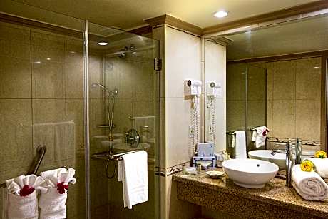 The resort features a variety of dining options, including an on-site buffet restaurant serving breakfast, lunch, and supper, a beach grill for a delightful lunch, and specialty restaurants open for dinner. Guests can take advantage of the outdoor swimming pool, banquet facilities, and free parking during their stay. Rooms are bathed in natural light and equipped with private bathrooms featuring marble countertops and showers, ensuring a comfortable and enjoyable stay.
