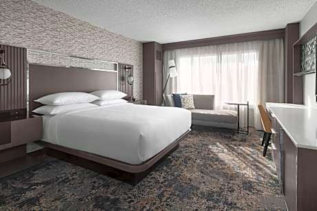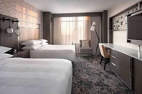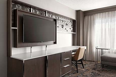 This hotel is 1.4 mi from downtown Bridgewater and 43 mi away from New York City. The hotel offers an indoor pool, on-site restaurant, and rooms with a 42" flat-screen TV. Bridgewater Marriott rooms include a coffee maker and desk. The rooms are equipped with pay-per-view movies. Guests at the Bridgewater Marriott can work out in the gym or work in the business center. The Bridgewater Marriott is within a 900-yards walk of the Bridgewater Commons Mall, which features shopping. The hotel is 4.3 mi away from Grape Expectations Winery.