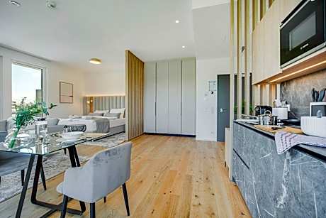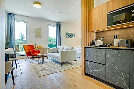 BRIGHT: Rosenheim Aicherpark offers air-conditioned accommodations in Rosenheim. Complimentary Wifi is offered throughout the property and private parking is available on site. The accommodation provides an elevator and full-day security for guests. The units come with parquet floors and feature a fully equipped kitchen with a dishwasher, a dining area, a flat-screen TV, and a private bathroom with walk-in shower and a hair dryer. A microwave, a toaster, and fridge are also featured, as well as a coffee machine and a kettle. At the condo hotel, units are fitted with bed linen and towels. Guests at the condo hotel will be able to enjoy activities in and around Rosenheim, like skiing, cycling, and hiking. Herrenchiemsee is 19 miles from BRIGHT: Rosenheim Aicherpark, while Erl Festival Theatre is 20 miles from the property.