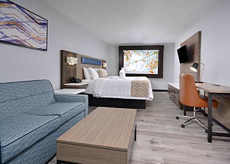 Located off Interstate 40, this Asheville, North Carolina hotel features an indoor pool and free hot breakfast. The historic Biltmore Estate is 1.7 mi from the hotel, while Downtown Asheville is 4 mi away. Free WiFi is provided. A flat-screen cable TV, microwave, and small refrigerator are provided in all rooms at the Brookstone Lodge near Biltmore Village, an Ascend Collection Hotel. Each warmly decorated room also features bathrooms with granite accents. Guests are welcome to relax in the lobby, featuring rustic décor and a large stone fireplace. The front desk is available 24/7, and a business center is on site. Guests can work up a sweat in the on-site fitness center. South Slope Brewery District is 3.5 mi away. Guests will also be 4 minutes' drive from Biltmore Village shopping and 11 minutes' drive from the River Arts District along the French Broad River.