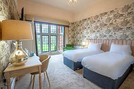 This huge private estate has an historical building at its center. Broome Park is a relaxing resort with modern log cabins, fine dining, indoor golf. Broome Park Golf and Country Club is in Barham, near Canterbury. The 17th-century main house has the restaurant and bar. The Deluxe rooms, Junior Suite and 2 Bedroom Suite are located within the main house and the Two-Bedroom Apartments are spread throughout the grounds, in well-equipped woodland cabins. The cabins feature a TV in each bedroom, 2 bathrooms, and a fully-fitted kitchen. The Broome Park grounds feature a full championship golf course, where there are discounts for hotel guests. At Broome Park, guests can play squash, tennis, croquet and snooker. There is also a gym. The Peacock Restaurant has an antique crystal chandelier and beautiful countryside views. Sandwiches, children's meals and takeaway menus are available in the Kitchener Bar. The Halfway House offers morning snacks.