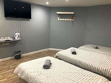 The triple room features soundproof walls and an electric kettle, as well as a private bathroom boasting a shower. This triple room has parquet floors, heating, a flat-screen TV and city views. The unit has 3 beds.