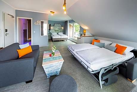 Bude54 offers accommodations in Sankt Peter-Ording, located near the boardwalk and near shops and restaurants. The Dünen Therme baths are only 5 minutes away from the property. Rooms are equipped with a flat-screen TV and a private bathroom. Bude54 features free WiFi throughout the property. There is a shared lounge at the property. Guests can enjoy reading, relaxing and socializing in the open lobby. St. Peter-Ording Zoo is 2.1 mi from Bude54, while Westerhever Lighthouse is 4.3 mi away. Pets can be accommodated in some rooms.