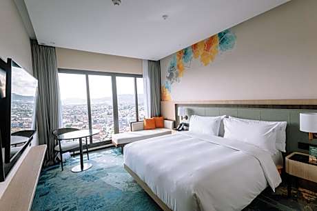Experience an abundance of unparalleled facilities and features at Holiday Inn Lampung Bukit Randu By IHG.Maintain seamless communication using the complimentary Wi-Fi at hotel.Guests can avail parking facilities at the hotel. During your stay at this fantastic hotel, the attentive front desk personnel can provide you with a range of amenities such as concierge service, luggage storage and safety deposit boxes.For extended visits or whenever required, the laundry service ensures your preferred travel garments remain fresh and accessible. Craving relaxation? Make the most of your stay at the Holiday Inn Lampung Bukit Randu By IHG with convenient amenities like 24-hour room service and daily housekeeping at your disposal. For visitors wishing to smoke, designated smoking zones can be found.At Holiday Inn Lampung Bukit Randu By IHG, every guestroom is provided with convenient amenities and fittings to ensure a comfortable stay.Enhance your experience at hotel with the knowledge that certain rooms are equipped with linen service and air conditioning for your convenience. A few accommodations within Holiday Inn Lampung Bukit Randu By IHG offer unique design elements such as a balcony or terrace. In select rooms within the hotel, a coffee or tea maker, bottled water, instant coffee and mini bar is available to cater to your requirements when desired. In the hotel, certain guest bathrooms come equipped with essential bathroom amenities, such as a hair dryer, toiletries, bathrobes and towels, ensuring a comfortable stay for guests. Begin your day with a scrumptious on-site breakfast available each morning at Holiday Inn Lampung Bukit Randu By IHG.At the hotel, an assortment of easily accessible and delicious meal choices are available to satisfy your appetite whenever it strikes. Enjoy an entertaining evening with your fellow travelers at the hotel's bar. At Holiday Inn Lampung Bukit Randu By IHG, guests can access vending machines that provide light snacks and beverages 24 hours a day.During your stay at hotel, an array of engaging activities and amenities guarantees a delightful experience.Discover the fitness amenities at hotel to maintain your health and strength during your getaway.