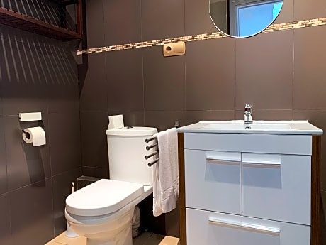 STUDIO 2 PEOPLE is 409 square feet and includes either 2 single beds 80-130 width or bunk beds plus satellite tv and hairdryer.