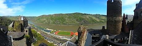Located within a historic castle, this 4-star hotel offers gourmet cuisine, romantic rooms with great views of the medieval town of Oberwesel and the Rhine River Valley. The rooms and suites of the Burghotel auf Schönburg feature a traditional and romantic décor, cable TV, a complimentary mini-bar and a spacious bathroom. Most rooms available feature free WiFI. Guests can try creative, international cuisine in the Burghotel’s elegant dining areas. There are many hiking routes near the Schönburg Burghotel.