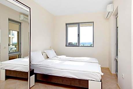 Offering air-conditioned apartments, an outdoor pool and a fitness center, Byala Panorama Resort is located 1148 feet from the beach and a 5-minute drive from Obzor Sea Resort. Free WiFi and free parking are provided. Each apartment comes with local digital TV channels, a fully-equipped, open-plan kitchen, a seating area with a sofa and a designated dining area. The bathroom has an underfloor heating and a shower. The balcony features outdoor furnishings. Massage services are available and provided at a surcharge. A kid's corner is also available. Byala Panorama Resort offers à-la-carte restaurant and a small shop for first need products.The property offers breakfast on set menu at a surcharge. The local bus station is located a 0.9 mi from the property. Varna Airport can be reached within a 45-minute drive.