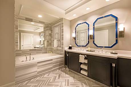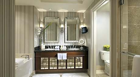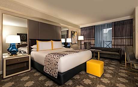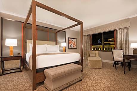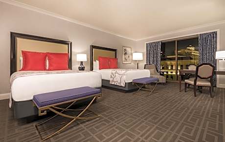 This hotel and casino on the Las Vegas Strip features celebrity-owned restaurants, The Forum Shops, an upscale spa and 7 swimming pools. All guest rooms offer a flat-screen cable TV. Caesars Palace rooms include an private bathroom with free toiletries. Room service is offered 24 hours a day. Dining options include Gordon Ramsay's Pub & Grill, Gordon Ramsay Hell's Kitchen, Mr. Chow and Restaurant Guy Savoy. The 500-item Bacchanal Buffet and casual dining choices like Beijing Noodle No. 9 are located on site. The Palace casino features slot machines and table games. The casino also offers a race & sports book. Guests can enjoy specialty cocktails at Caspians and Vanderpump's Cocktail Garden or visit the Omnia nightclub. The Qua Baths & Spa offers a menu of massage, facials and body treatments. A spa experiences such as a Roman Bath hydrotherapy circuit and an Arctic Ice Room where man-made snow falls on spa guests as they relax on heated benches are also available for guest relaxation.