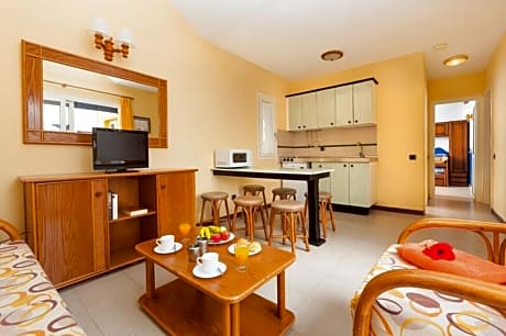 Ideal for beach vacationers, this hotel lies in the heart of Caleta de Fuste, approximately half a mile from the beach. The nearest shops can be reached within about a quarter mile. Guests have a choice of 296 rooms. Multilingual staff at the reception desk in the lobby are happy to answer any questions. The apartment hotel provides a baggage storage service, a currency exchange service, a laundry service, a smoke alarm and a smoking area. Wireless internet access (no extra charge) is provided in public areas. The hotel has wheelchair-accessible facilities. Children can enjoy the playground. Rooms feature a living area and a bathroom, and air conditioning ensures just the right temperature. Some units offer a beautiful sea view. Guests are sure to get a good night's sleep in the sofa bed. Guests can also reserve separate bedrooms. A minibar is provided. Guests will also find a tea/coffee station included among the standard features. Equipped with a telephone, satellite television and WiFi (no extra charge), the rooms provide many ways for guests to stay connected and entertained. Slippers are included. A hairdryer and a telephone are available in the bathrooms, which are equipped with a shower. For extra comfort in the bathrooms, guests are offered cosmetic products. Wheelchair-friendly rooms with wheelchair-accessible bathrooms are also available.