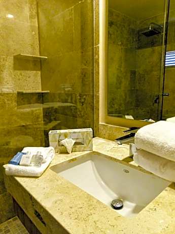 Hotel Calypso Cancun is located between the Nichupte Lagoon and the Caribbean Sea, and features an on-site restaurant as well as a tobacco shop. This Cancun hotel features 2 fresh water pools, and an on-site cocktail lounge. Each guest room at the Hotel Calypso Cancun offers a work desk, bathroom amenities, and cable TV. The Calypso Hotel Cancun, also features a guest laundry facility and on premise car rental. The hotel is located 328 feet off the beaches of Cancun and 25 minutes from the airport. Rate does not include eco tax of $76 MXN (approximately $4.47 USD) per room per night, must be paid upon arrival.
