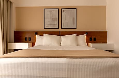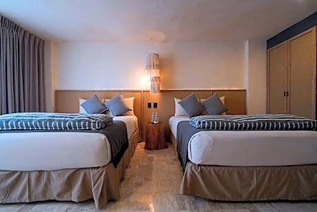 Hotel Calypso Cancun is located between the Nichupte Lagoon and the Caribbean Sea, and features an on-site restaurant as well as a tobacco shop. This Cancun hotel features 2 fresh water pools, and an on-site cocktail lounge. Each guest room at the Hotel Calypso Cancun offers a work desk, bathroom amenities, and cable TV. The Calypso Hotel Cancun, also features a guest laundry facility and on premise car rental. The hotel is located 328 feet off the beaches of Cancun and 25 minutes from the airport. Rate does not include eco tax of $76 MXN (approximately $4.47 USD) per room per night, must be paid upon arrival.