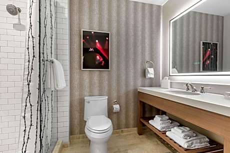 Well set in the center of Nashville, Cambria Hotel Nashville Downtown provides air-conditioned rooms, an outdoor swimming pool, free WiFi and a fitness center. Among the various facilities are a shared lounge, a terrace, as well as a restaurant. Private parking is available on site. All guest rooms at the hotel are equipped with a seating area, a flat-screen TV with satellite channels and a private bathroom with free toiletries and a bath or shower. Guest rooms will provide guests with a fridge. Staff at Cambria Hotel Nashville Downtown are available to give guidance at the 24-hour front desk. Popular points of interest near the accommodation include Bridgestone Arena, Ryman Auditorium and Johnny Cash Museum. Nashville International Airport is 5.6 miles away.
