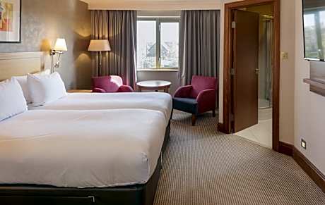 The Cambridge Belfry Hotel & Spa has a peaceful setting in Cambourne, 8 miles west of Cambridge. It has a swimming pool, gym, tennis court, spa and stylish, modern rooms. Each room has free internet access. Additional amenities include tea/coffee making facilities, a desk and a TV. The Cambridge Belfry Hotel & Spa has lake views, and is 6 miles from the A14, and the M11 for Duxford Imperial War Museum. The American War Cemetery is a few miles away. Along with state-of-the-art gym facilities, the spa offers an indoor swimming pool, steam room, a sauna and treatments. The hotel has The Bridge Bar and Restaurant for relaxed dining.
