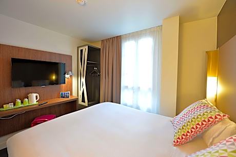Featuring a terrace and a bar, CAMPANILE PARIS - Clichy Center is set in front of Clichy Town Hall, 0.7 mi from Etam Headquarters and 787 feet from Mairie de Clichy Metro Station. Free WiFi is available and L'Oreal Headquarters is 1 mi away. At the hotel, all rooms are fitted with a desk and a flat-screen TV. Rooms are equipped with a private bathroom. The rooms at CAMPANILE PARIS - Clichy Center feature air conditioning and a wardrobe. The 24-hour front desk can offer helpful tips for getting around the area. Clichy Multimedia Library is 1 mi from the accommodations. The nearest airport is Paris - Orly Airport, 14 mi from CAMPANILE PARIS - Clichy Center.