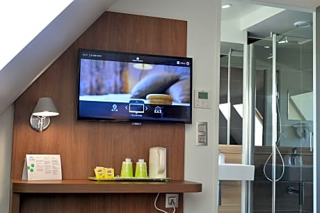The double room provides air conditioning, soundproof walls, as well as a private bathroom featuring a walk-in shower and a hairdryer. The double room offers a tea and coffee maker, a wardrobe, a carpeted floor, heating and a flat-screen TV. The unit offers 1 bed.