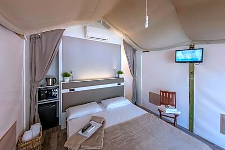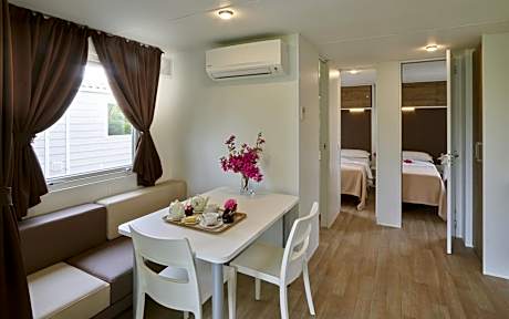 Campeggio Conca D'Oro offers independent bungalows with air conditioning, LCD TV, and patio. It is located within the Riserva Naturale Fondo Toce reserve, 2625 feet from the center of Feriolo di Baveno. Parking is free. Each bungalow features a fully-equipped kitchen, a private bathroom with shower, and bright tiled floors. Wi-Fi is free throughout. Each bungalow is maximum a 5-minute walk from the private beach on the shores of Lake Maggiore. The Conca D'Oro is complete with a restaurant and pizzeria, open every day for breakfast, lunch and dinner. The cuisine serves regional and national specialties. The bar is open from 08:00 until 23:00. On site you will find a small supermarket, and volleyball and 5-a-side football courts. Free entertainment for adults and children is available during August and July. License Number(s): 103008-CAM-00002, IT