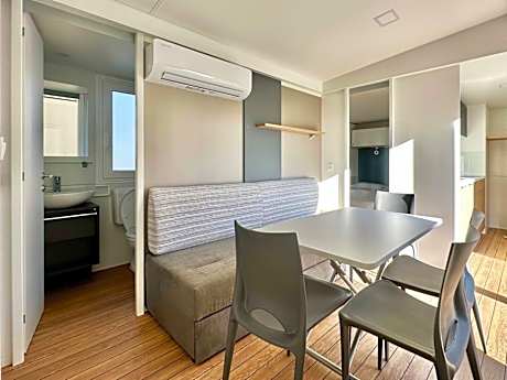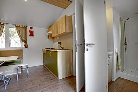 Boasting a private entrance, this air-conditioned mobile home includes 1 living room, 2 separate bedrooms and 1 bathroom with a shower. The well-fitted kitchen has a stovetop, a refrigerator and kitchenware. Among the room amenities are a seating area, a dining area and a wardrobe as well as garden views. The unit has 3 beds.