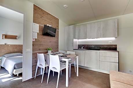 Located on the shores of the Venetian Lagoon, Camping Fusina, designed by architect Carlo Scarpa, offers accommodations all year round in Malcontenta. Shared facilities include a bar with a maxi flat-screen TV, an à la carte restaurant, a pizzeria, a grocery store and a laundry. All with air conditioning and private bathroom, units at Camping Fusina come with functional décor, including a wardrobe and mosquito nets. Most units also feature a kitchenette. The property is 3.1 mi from the center of Malcontenta and is located right on the lagoon's edge with panoramic views of Venice. Venice itself is on the opposite side of the Lagoon and can be reached with a 20-minute motorboat ride from the nearby terminal. From the same ferry terminal you can also reach the Alberoni beach, in Venice Lido.