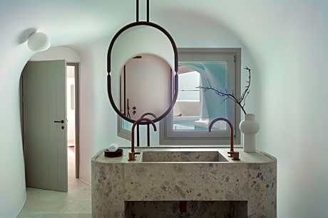 Located in Oia, 1.3 miles from Katharos Beach, Canaves Ena - Small Luxury Hotels of the World provides accommodations with a restaurant, free private parking and a bar. Each room at the 5-star hotel has sea views, and guests can enjoy access to an outdoor swimming pool. The property has a 24-hour front desk, airport transportation, room service and free WiFi throughout the property. The hotel will provide guests with air-conditioned rooms with a desk, a coffee machine, a fridge, a minibar, a safety deposit box, a flat-screen TV, a terrace and a private bathroom with a shower. Every room comes with an electric tea pot, while some have a balcony. All guest rooms include a closet. Canaves Ena - Small Luxury Hotels of the World offers an à la carte or American breakfast. Archaeological Museum of Thera is 6.1 miles from the accommodation, while Santorini Port is 12 miles away. Santorini International Airport is 10 miles from the property.