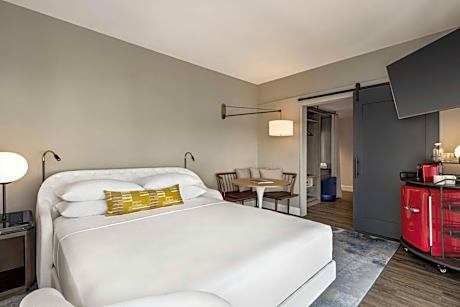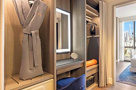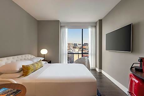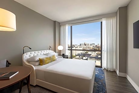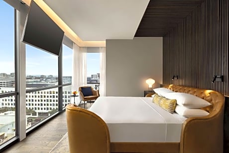 Our downtown San Francisco hotel is within three blocks of the Moscone Center, Yerba Buena Gardens, and several museums. We’re within a mile of countless restaurants and shops, and we’re half a mile from transit stations. Enjoy locally inspired fare and handcrafted beverages at our rooftop lounge. Each room at Canopy by Hilton San Francisco SoMa offers a dressing room area separated from the bedroom by sliding door panels.. The dressing area features a closet with shelving and storage space, a make-up desk with lighting and a walk-in shower with a rainfall shower head. An ergonomic bed and a 42-inch flat-screen smart TV are provided in the bedroom area. Panoramic city skyline views surround the hotel's heated outdoor rooftop lounge. The Bean Bar coffee shop offers breakfast and grab-and-go options until the evening. The Mezzanine combines an expert craft cocktail and wine program. Union square is 0.8 mi from the hotel, while AT&T Park is 1 mi from the property. The nearest airport is San Francisco International Airport, 13 mi from the property.