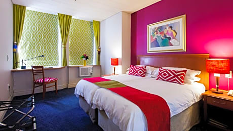 Located in the city center of Cape Town, Cape Town Lodge Hotel offers a deck with roof-top pool, bar and fitness center. Table Mountain and the popular V&A Waterfront are both within 3.1 mi. Located on the higher floors, guestrooms at Cape Town Lodge Hotel look out onto Table Mountain, Lion’s Head, Signal Hill or the Harbor. Each room comes with a 32" flat-screen satellite TV, WiFi access and a work desk. The Famous Butchers Grill restaurant serves superior South African “A” grade steaks accompanied by live music. The décor is inspired by Old Cape Town photos on the walls and sculptures. An array of local wine labels complement the food selection. The Cape Town Lodge Hotel is 1.2 mi away from the Cape Town International Convention Center, while Cape Town Stadium is 1.6 mi away. Cape Town International Airport is 14 mi away.