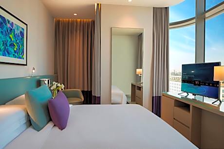 Capital Centre Arjaan by Rotana offers top-notch services and amenities, ensuring guests experience utmost comfort. Maintain seamless communication using the complimentary Wi-Fi at serviced apartment. Effortlessly arrange transportation to and from the airport using the serviced apartment's airport transfer services.Discovering Abu Dhabi becomes even more accessible, thanks to the taxi amenities provided at the serviced apartment. For visitors traveling by automobile, complimentary parking is available.During your stay at this fantastic serviced apartment, the attentive front desk personnel can provide you with a range of amenities such as concierge service, luggage storage and safety deposit boxes. In search of city's top entertainment, seek assistance at the serviced apartment's ticket service and tours for reservations. At the serviced apartment, utilize the on-site dry cleaning service and laundry service to maintain your beloved travel attire fresh, allowing you to bring fewer clothes.Craving relaxation? Make the most of your stay at the Capital Centre Arjaan by Rotana with convenient amenities like 24-hour room service, room service and daily housekeeping at your disposal.For visitors wishing to smoke, designated smoking zones can be found.At Capital Centre Arjaan by Rotana, every guestroom is provided with convenient amenities and fittings to ensure a comfortable stay.Enhance your experience at serviced apartment with the knowledge that certain rooms are equipped with linen service, blackout curtains and air conditioning for your convenience. A few accommodations within Capital Centre Arjaan by Rotana offer unique design elements such as a separate living room. Certain rooms boast in-room amusement features such as daily newspaper, television and cable TV, offering guests an enjoyable stay.In select rooms within the serviced apartment, a refrigerator, bottled water, instant coffee, instant tea and mini bar is available to cater to your requirements when desired. In the serviced apartment, certain guest bathrooms come equipped with essential bathroom amenities, such as a hair dryer, toiletries and bathrobes, ensuring a comfortable stay for guests. Begin your day with a scrumptious on-site breakfast available each morning at Capital Centre Arjaan by Rotana.Begin your day feeling refreshed and invigorated as you enjoy a delightful cup of quality coffee available at the cafe situated within the serviced apartment.At the serviced apartment, an assortment of easily accessible and delicious meal choices are available to satisfy your appetite whenever it strikes.At Capital Centre Arjaan by Rotana, guests with diverse dietary needs are accommodated by offering an array of cuisine options, including kosher and halal.Enjoy an entertaining evening with your fellow travelers at the serviced apartment's bar.Capital Centre Arjaan by Rotana provides a superb assortment of leisure amenities for guests to enjoy.Conclude your holiday perfectly with a visit to massage, steam room, spa and sauna on your final days. Be sure to drop by the pool at serviced apartment at least once during your stay. Discover the fitness amenities at serviced apartment to maintain your health and strength during your getaway.