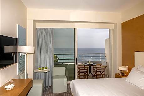 The Capo Bay Hotel in Protaras, Cyprus is exceptionally located in the heart of Protaras. This beach hotel in Protaras features gardens with running waters and fish ponds lead down to the waterfront and the Blue Flag Fig Tree Bay. Capo Bay guest rooms are equipped with air conditioning, satellite TV and hot drink facilities. Free WiFi is available throughout. Several rooms face the Mediterranean Sea. Buffet breakfast is served every morning, and the hotel’s restaurant provides far-reaching sea views. Our food and beverage outlets operate on rotation and management retains the discretion to implement changes without prior notice. Ideal for relaxing holidays, the Capo Bay has a spa center which includes a sauna, hot tub, steam bath, hammam, Vichy shower, a fully equipped gym and a 15-yard heated indoor lap pool. Recreation facilities include a modern fitness center and a scuba diving school. For young guests from 4 to 12 years old there is a supervised kids' club with a wide variety of activities and games. There is also a playground, a children's pool, as well as special children's menu at the restaurant. Capo Bay Hotel is located 37 mi from Larnaka Airport. Free on-site parking is available. The Capo Bay Beach is a mere stroll away from a selection of shops, bars and restaurants.