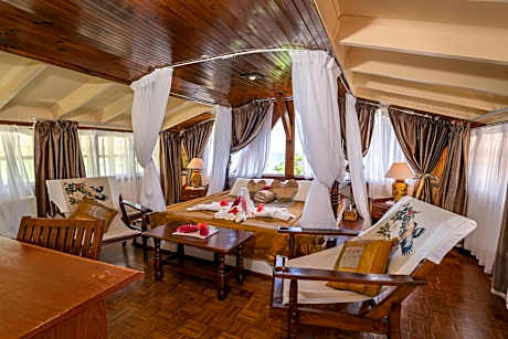This romantic honeymoon suite features an electric kettle, a mini-bar, a seating area, air conditioning, and a private bathroom with a bath and shower.