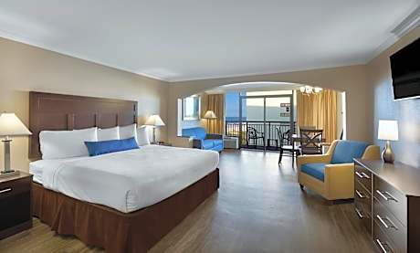 Located 5 mi from Tanger Outlets, this Myrtle Beach ocean-side resort features an on-site restaurant, bar, and 9 swimming pools with a lazy river. Guests will also be 11 minutes' drive from Broadway at the Beach and the Myrtle Beach Boardwalk. A fully equipped kitchenette, seating area, and flat-screen cable TV are included in all apartments. Select Caravelle Resort apartments feature a balcony with an oceanfront view. Guests can play in the game room or lounge in the indoor pool. Laundry facilities is available for added convenience. Santa Maria Restaurant serves an American Southern-style breakfast buffet, and offers a buffet-style dinner on a seasonal basis. The Liquid Lounge is a full-service bar with light fare, free WiFi, and flat-screen cable televisions. The resort is 2.5 mi from the Hard Rock Cafe and 8 mi from Myrtle Beach International Airport. Family Kingdom Amusement Park is 1.6 mi from the resort.