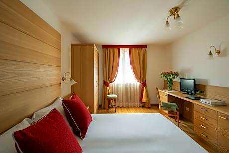 Hotel Carlo Magno offers free access to its large spa with indoor pool. Located just 656 feet from the Grostè cable car and next to the ski slopes, it provides a free shuttle to Madonna di Campiglio village's center. Rooms at Carlo Magno are spacious and feature satellite TV and a mini-bar. Some have balconies with a view of the Dolomites. Children are well catered for with a playroom, kids club, and separate pool with water slide. Adults can enjoy the wellness center, which includes a sauna, Turkish bath, and hot tub, along with a Kneipp path and a variety of massages and treatments. The Carlo Magno Hotel includes ski and bike rental, and even an astronomical observatory. You have a choice of 3 restaurants, ranging from the romantic Ristorante Baita with fireplace to the family-friendly Sala Gran Buffet. The ski elevators connect you to over 14 mi of slopes in Campo Carlo Magno. During summer, the hotel is well placed for exploring the 50,000 hectares of the Parco Naturale dell’Adamello.
