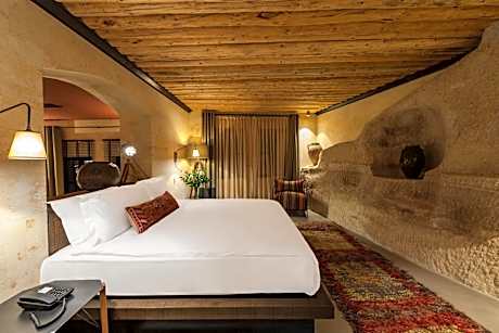 Great care is taken to ensure guests experience comfort through top-notch services and amenities. Stay connected with your associates, as complimentary Wi-Fi is available during your entire visit.To facilitate your arrival and departure, you can pre-book airport transfer services prior to checking in.The hotel offers taxi and shuttle amenities for your ease in navigating around Goreme.When arriving by car, you'll be grateful for the on-site complimentary parking at hotel.The hotel offers reception amenities including concierge service, express check-in or check-out and luggage storage to ensure a comfortable stay for guests. Should you require it, the tours can even assist you in booking tickets and securing reservations for the finest shows and events in the vicinity. The hotel also features a fireplace, providing a cozy ambience during cool evenings. Your stay will be comfortable with the presence of room service and daily housekeeping as an in-room amenity for your relaxation and enjoyment.In order to ensure the utmost level of relaxation, the guestrooms feature an inviting design and are equipped with all basic necessities, creating a delightful stay experience.To ensure a pleasant stay, a selection of rooms at hotel come furnished with linen service, blackout curtains and air conditioning, all designed with your ease in mind.At Carus Cappadocia, various room configurations are available, featuring separate living room and balcony or terrace in some rooms. In select rooms, visitors can enjoy a touch of amusement with the availability of television and cable TV for their entertainment needs. Within specific rooms, a refrigerator, bottled water, a coffee or tea maker, instant coffee, instant tea and mini bar is conveniently available for your use.Understanding the significance of bathroom facilities in enhancing visitor contentment, hotel offers a hair dryer, toiletries and bathrobes within a few chosen chambers. Each day, arise to a delightful complimentary morning meal at Carus Cappadocia.Various excellent meal offerings at hotel ensure that enticing and easily accessible options are constantly available.Upon your arrival, don't miss experiencing bar for enjoyable in-house evening entertainment.Throughout the day, engage in the entertaining activities available at Carus Cappadocia.Unwind and conclude each day delightfully by stopping by massage, steam room, spa and sauna, ensuring a soothing experience.Unwind by the pool at hotel and cherish a leisurely moment. License Number(s): 17850