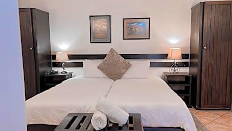 Located in Windhoek, 2.9 miles from Windhoek Independence Stadium, Casa Blanca Boutique Hotel Pension has accommodations with an outdoor swimming pool, free private parking, a fitness center and a garden. The property has a terrace, as well as a bar. The property provides room service, a concierge service and currency exchange for guests. At the hotel, all rooms include a closet. Complete with a private bathroom equipped with free toiletries, all rooms at Casa Blanca Boutique Hotel Pension have a flat-screen TV and air conditioning, and selected rooms also offer a patio. Guest rooms will provide guests with a fridge. A buffet, à la carte or continental breakfast is available at the property. At the accommodation you'll find a restaurant serving African cuisine. Vegetarian, dairy-free and vegan options can also be requested. Warehouse Theatre is 3 miles from Casa Blanca Boutique Hotel Pension, while Alte Feste Museum is 3.5 miles away. Eros Airport is 1.2 miles from the property, and the property offers a paid airport shuttle service.