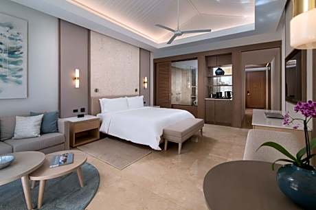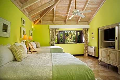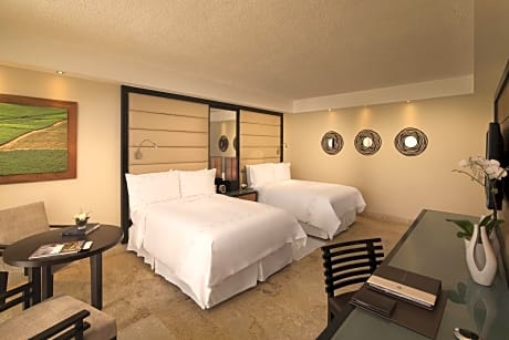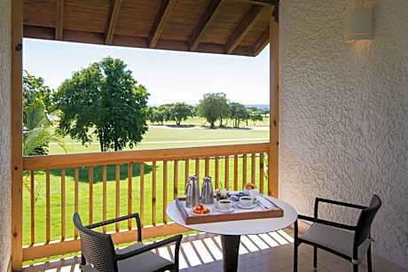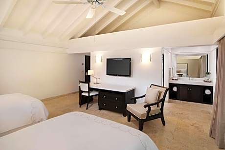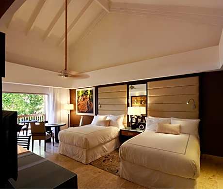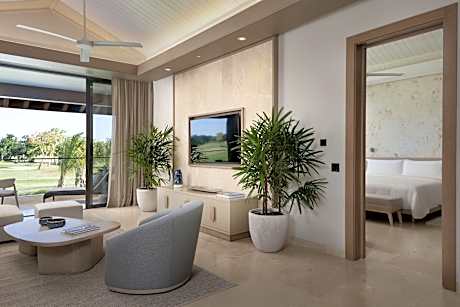 The accommodations at Casa de Campo are designed with rich mahogany furnishings and feature private balconies or terraces. Guests can enjoy modern conveniences such as free Wi-Fi and 42-inch flat-screen TVs, along with spacious walk-in closets and private dressing areas with black marble vanities.