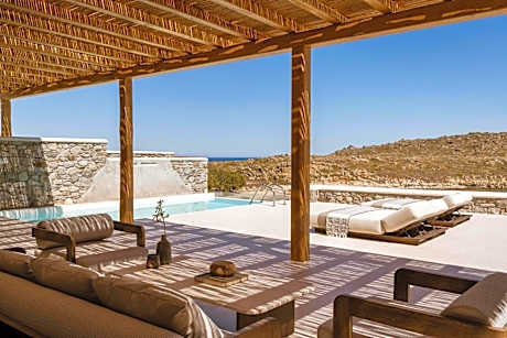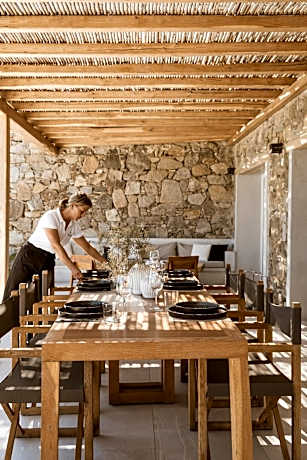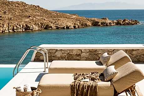 Casa Del Mar Mykonos Seaside Resort offers Cycladic-style villas with views of the sea, the sunrise and the island of Naxos. It is located in the area of Aleomandra, over its private cove on Glyfadi bay. Spa and wellness facilities including indoor pool and a gym are available. The villas of the Casa Del Mar Mykonos Seaside Resort feature cool stone floors and minimal furnishings. Each includes 2 or 3 bedrooms, elegant living and kitchen areas and large private terrace with panoramic view. A TV and free WiFi are featured and CD/DVD player is available upon request. A mobile phone is provided upon arrival in order to facilitate communication with the front desk. Other services include car/yacht rental, concierge service and private chef on request. Free sun beds and umbrellas are provided on the private beach. Just 2.5 mi away from the cosmopolitan Mykonos Town and the airport, the complex is completely protected from the Mykonian winds. Ornos with its many shops, restaurants and famous beach is just 0.9 mi away.