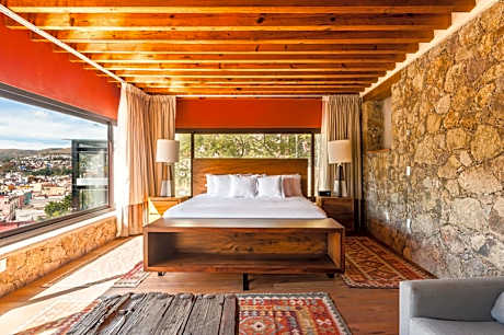 Located in Guanajuato, a 7-minute walk from Alhondiga de Granaditas Museum, Casa del Rector Hotel Boutique has accommodations with an outdoor swimming pool, private parking, a garden and a terrace. This 5-star hotel offers a bar. The property provides a 24-hour front desk, airport transportation, room service and free WiFi. The hotel will provide guests with air-conditioned rooms offering a desk, a coffee machine, a minibar, a safety deposit box, a flat-screen TV, a patio and a private bathroom with a shower. All rooms feature a closet. The breakfast offers continental, American or vegetarian options. At Casa del Rector Hotel Boutique you'll find a restaurant serving American, French and Mexican cuisine. Vegetarian, dairy-free and vegan options can also be requested. Popular points of interest near the accommodation include Union Garden, Juarez Theater and The Alley of the Kiss. Bajio International Airport is 17 miles from the property.