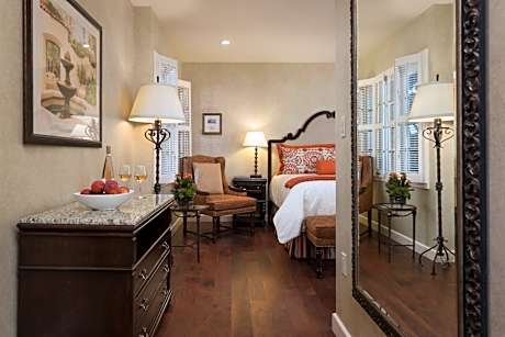Guests can enjoy a swim in the outdoor pool or maintain their fitness routine at the on-site fitness center. The full-service spa offers a range of treatments, including couple's sessions. Dining options include the Lounge at Casa Munras Garden Hotel & Spa and Estéban Restaurant, both serving Mediterranean and Spanish-inspired dishes. The hotel is conveniently located near popular attractions such as Del Monte Golf Course and Monterey Bay Whale Watching Tours, making it an ideal choice for visitors looking to explore Monterey.