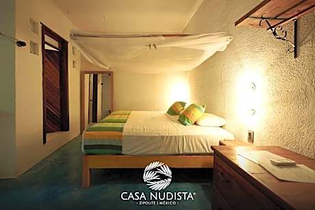 Located in Zipolite, Casa Nudista - LGBT Hotel is 328 feet from Zipolite Walkway and offers various facilities, such as a bar, pool and music all day. With a garden, this mandatory-nudist property also has a terrace. Love Beach is 0.6 mi from the hotel and White Rock Zipolite is 1312 feet away. Guest rooms at the nudist hotel are fitted with a seating area. Rooms include a private bathroom with a shower and free toiletries, while the dormitory room has a shared bathroom. Guests at Casa Nudista - LGBT Hotel can enjoy a continental breakfast. On Saturday, nudist-only events with house music are held at the property. Camarones Beach is less than 0.6 mi from the accommodations, while Zipolite-Puerto Angel Lighthouse is 1.2 mi from the nudist property. Huatulco International Airport is 19 mi away.