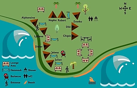 Located in the middle of nature on top of 2 beaches near the small village of Gromin Dolac on Hvar Island, Cast Away - Eco Resort is a type of Robinson Crusoe accommodations offering wooden tents. Guests can enjoy 3 lounge area's with sea views, 5 hammocks and a double sunbed. Free shuttle for pick-up and drop off at the ferry terminal is provided. Each tent is equipped with a mattress, pillows, a light and they offer sea views and hammocks. This self-sustainable eco-village features a common kitchen with 3 fridges, 2 stoves, an oven, shared bathrooms with 2 toilets on rainwater and 3 showers with hot rainwater. A terrace with tables and chairs is provided. There are lockers and private storage boxes. Limited electricity with solar panels and a power generator is provided from 14:00 until 16:00. You can engage in various activities, such as windsurfing, paddle boarding, kayaking, snorkeling and diving. The nearest seaport is Jelsa, 6.2 mi away. Car and motorbike rentals are available but please note that the Cast Away - Eco Resort is located at the end of a 2.2 mi macadam road.