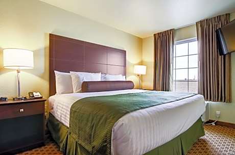 Castle Rock Inn & Suites - Quinter is located in Quinter and features a garden and a shared lounge. Featuring a fitness center, the 3-star hotel has air-conditioned rooms with free WiFi, each with a private bathroom. The hotel has family rooms. Guest rooms at the hotel are equipped with a flat-screen TV with cable channels and a safety deposit box. Some rooms are equipped with a kitchenette with a fridge, a dishwasher and a microwave. At Castle Rock Inn & Suites - Quinter each room is equipped with bed linen and towels. Free private parking and a business center are available, as well as a 24-hour front desk. The nearest airport is Hays Regional Airport, 59 miles from the accommodation.