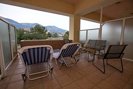 This air-conditioned quadruple room is consisted of of a flat-screen TV with cable channels, a private bathroom as well as a balcony with mountain views. The unit has 3 beds.